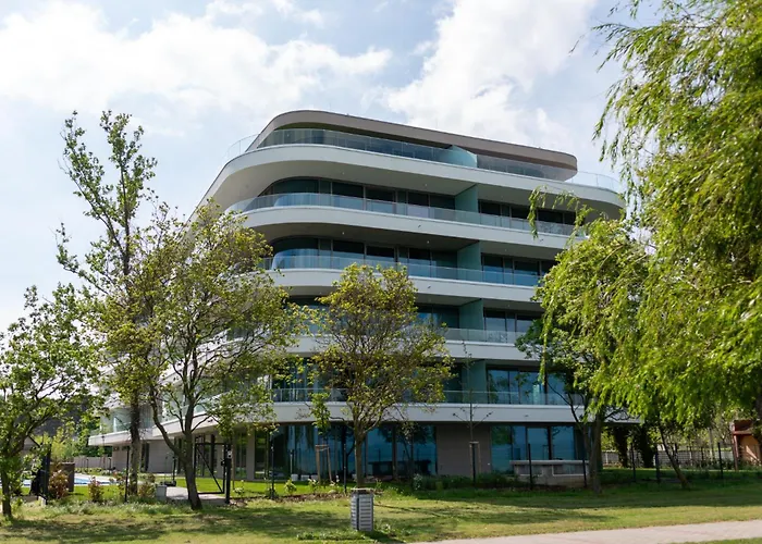 シオ-フォクにある[Luxury By Waveアパ-トメント]アパ-トは貸金庫 と理容室のあるベッドル-ムの1室の施設です. Galerius Elmenyfurdo es Wellness Kozpont徒歩6分の海辺のアパ-トメントでアクアパ-ク と屋外プ-ルを提供します.